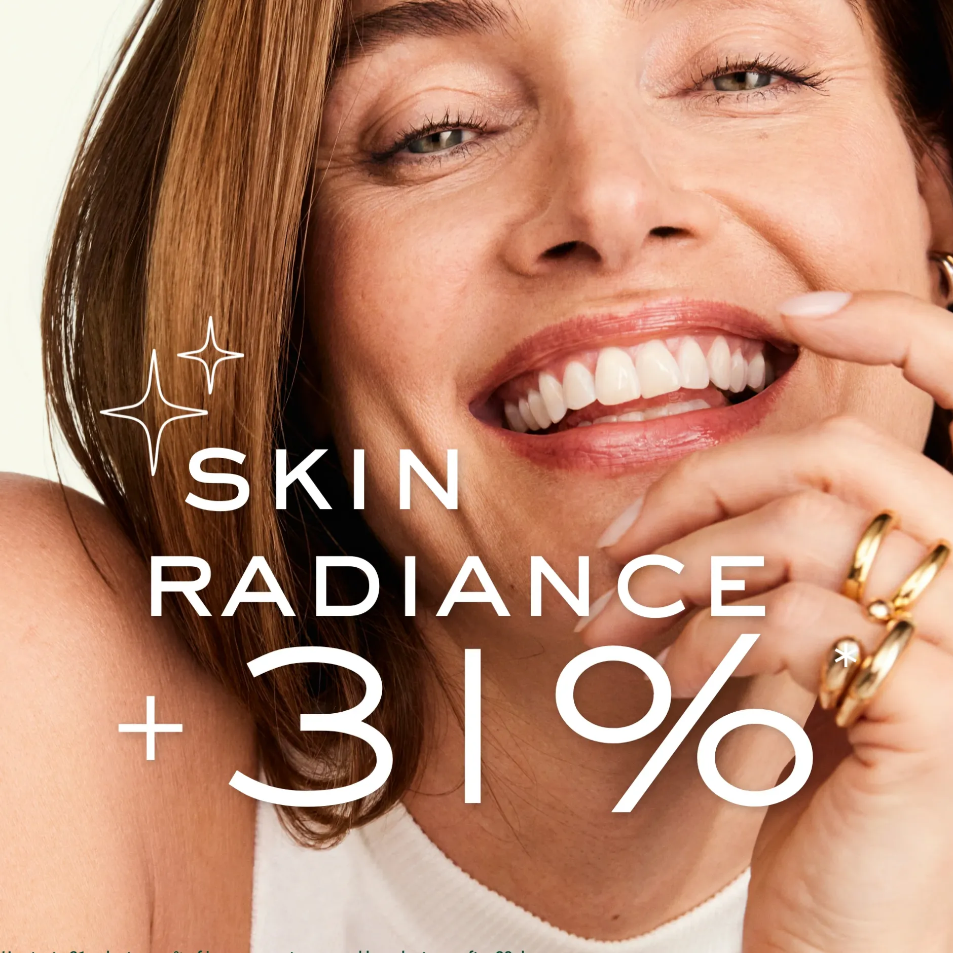 Simultaneamente offre una correzione anti-età globale: bastano 3 gocce di siero per [R]ivitalizzare, [R]igenerare e [R]innovare la pelle. La pelle sembra istantaneamente più luminosa. – Dopo 2 settimane, la pelle sembra più uniforme per il 86 delle donne⁽¹⁾. Dopo 1 mese la pelle è più soda; è più liscia per il 90% delle donne⁽²⁾.